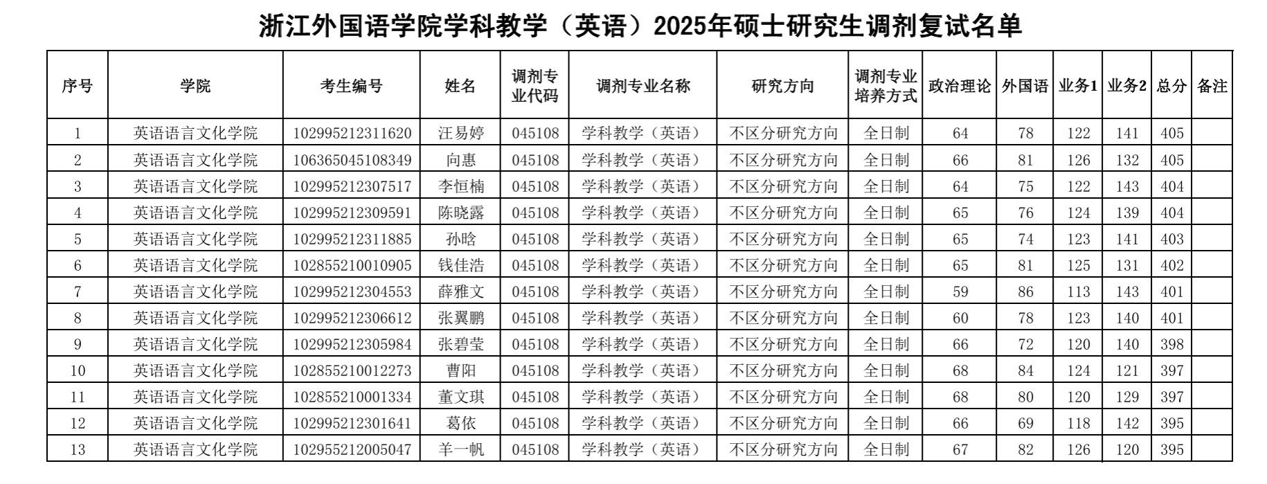 EMC易倍2025年硕士研究生招生调剂考生复试名单
