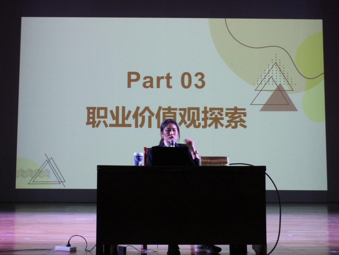 十二老师从行业、企业、工作岗位三个方面为同学们提供了择业时的参考依据,并强调大学期间参与的社会实践是我们今后能否顺利就业的关键。