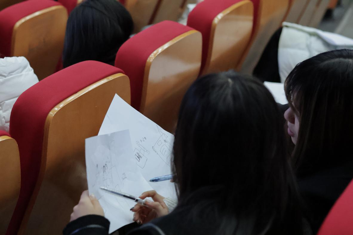 在讲座伊始,十二老师借“职业梦想图”与“生涯度假计划”两个小游戏,引领同学们从职业兴趣、能力、价值三方面展开内省式探讨。